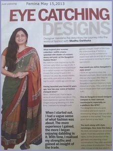 Vandana's work has been featured in Femina, and other popular fashion magazines and in popular newspaper as a woman, whose success is attributed to her grit, determination, and single-minded focus in dressing up lovely women of all ages and from varied walks of life. Truly, her designed attires make women walk with the vibe, “Yes, I can make my Dreams Come True.”